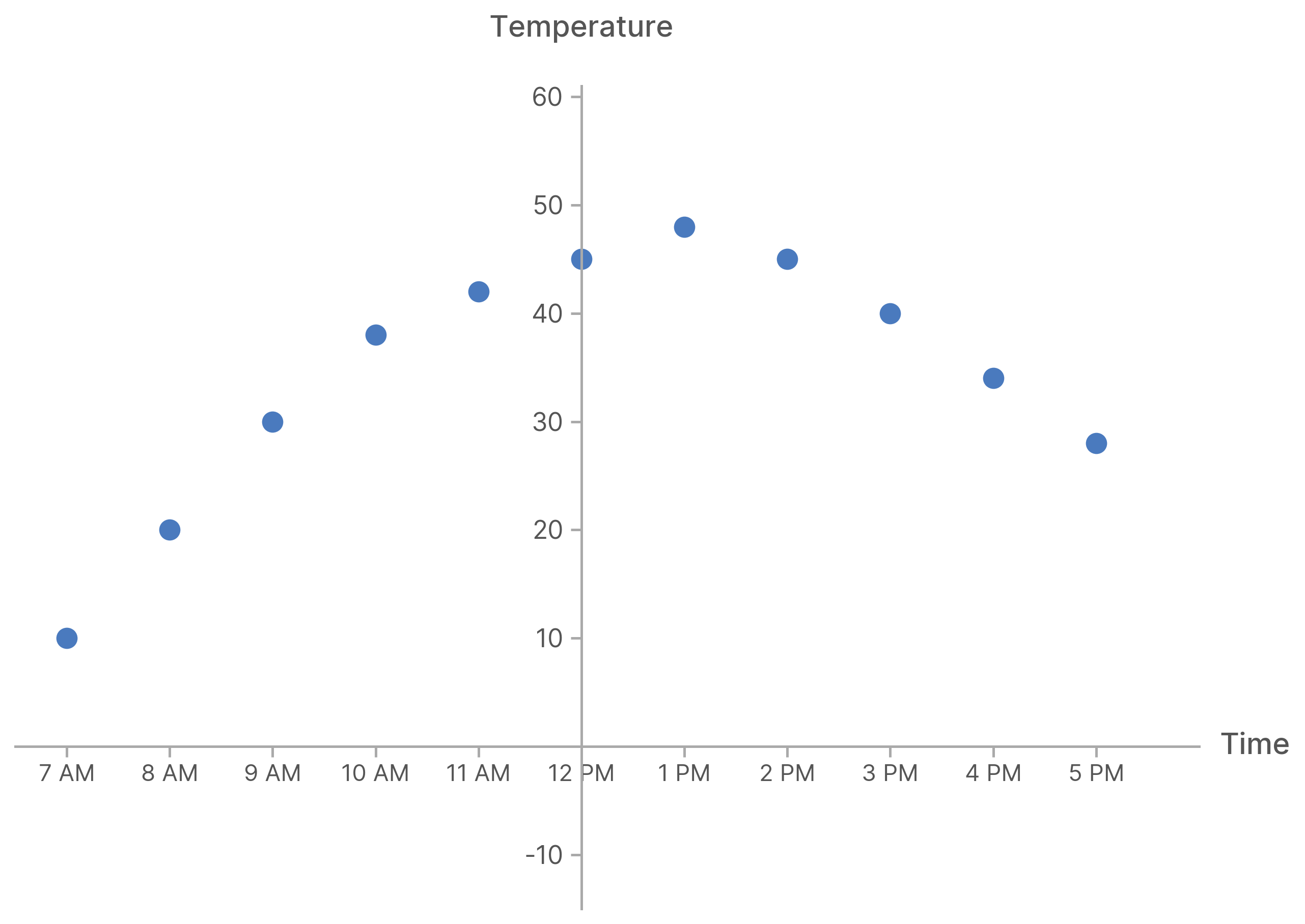 Each of the dots we have indicated, or each point of our graph, corresponds to a pair of numbers, e.g., (9 A.M., $30^{\circ}$ ). The first number indicates the (signed) distance from a fixed vertical line of reference; this point is -3 hours from the noon-line. Similarly the second number indicates the distance above the zero-degree line, in this case +30 degrees.