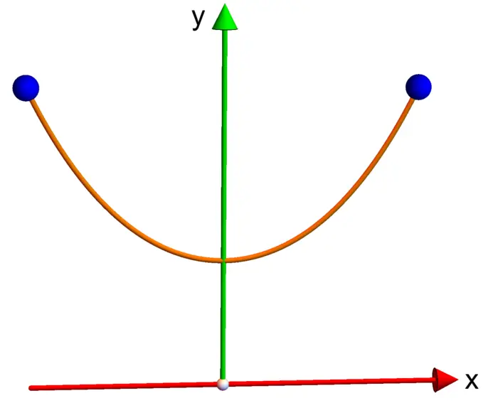 - Galileo was the first to investigate the catenary. It is the curve, a freely hanging heavy rope describes, if the end points have the same height. Galileo mistook the curve for a parabola. It was Johannes Bernoulli in 1691, who obtained its true form after some competition involving Huygens, Leibniz and two Bernoullis. The name "catenarian" (=chain curve) was first used by Huygens in a letter to Leibnitz in 1690.↩︎