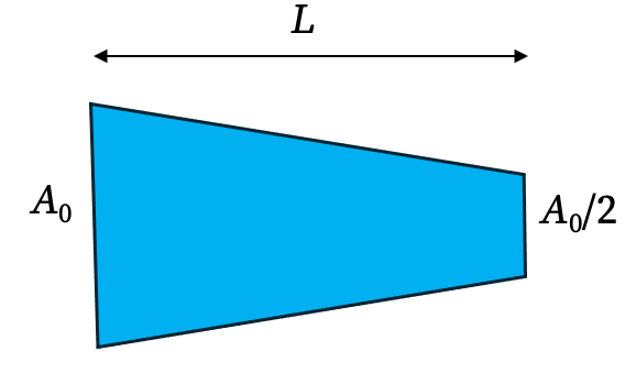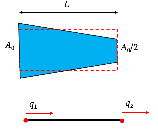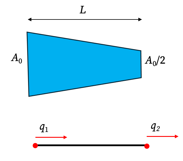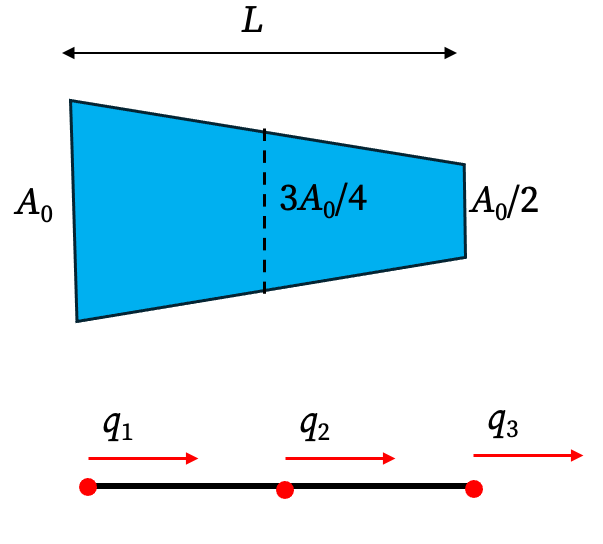 Let’s model the tapered bar with two linear elements of length L/2. We can approximate the area as constant for each element, using the value at its midpoint.