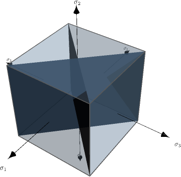 - \(\tau_{13} = \left| \frac{\sigma_1 - \sigma_3}{2} \right|\) (on planes bisecting axes 1 and 3)
