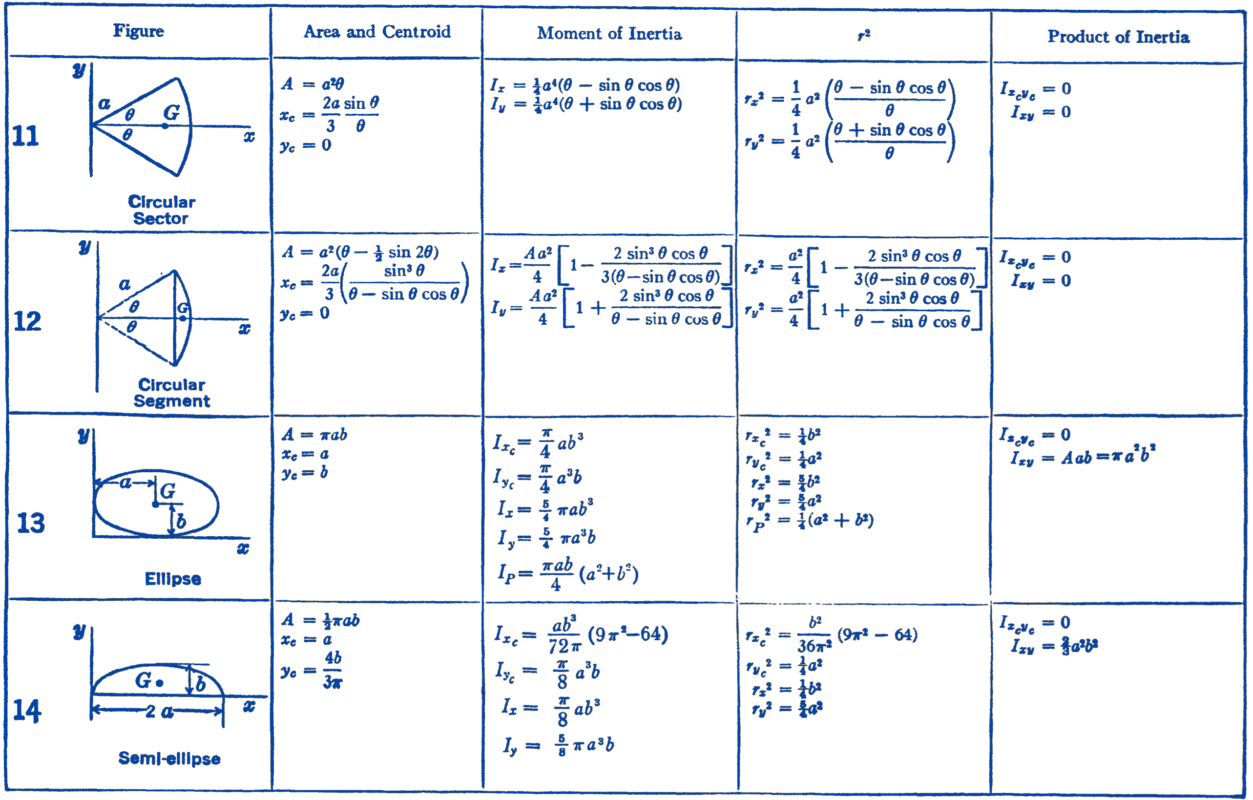 - \(I_{x_c}, I_{\nu_c}=\) Moment of inertia about an axis through the centroid parallel to the \(x y\) axes.