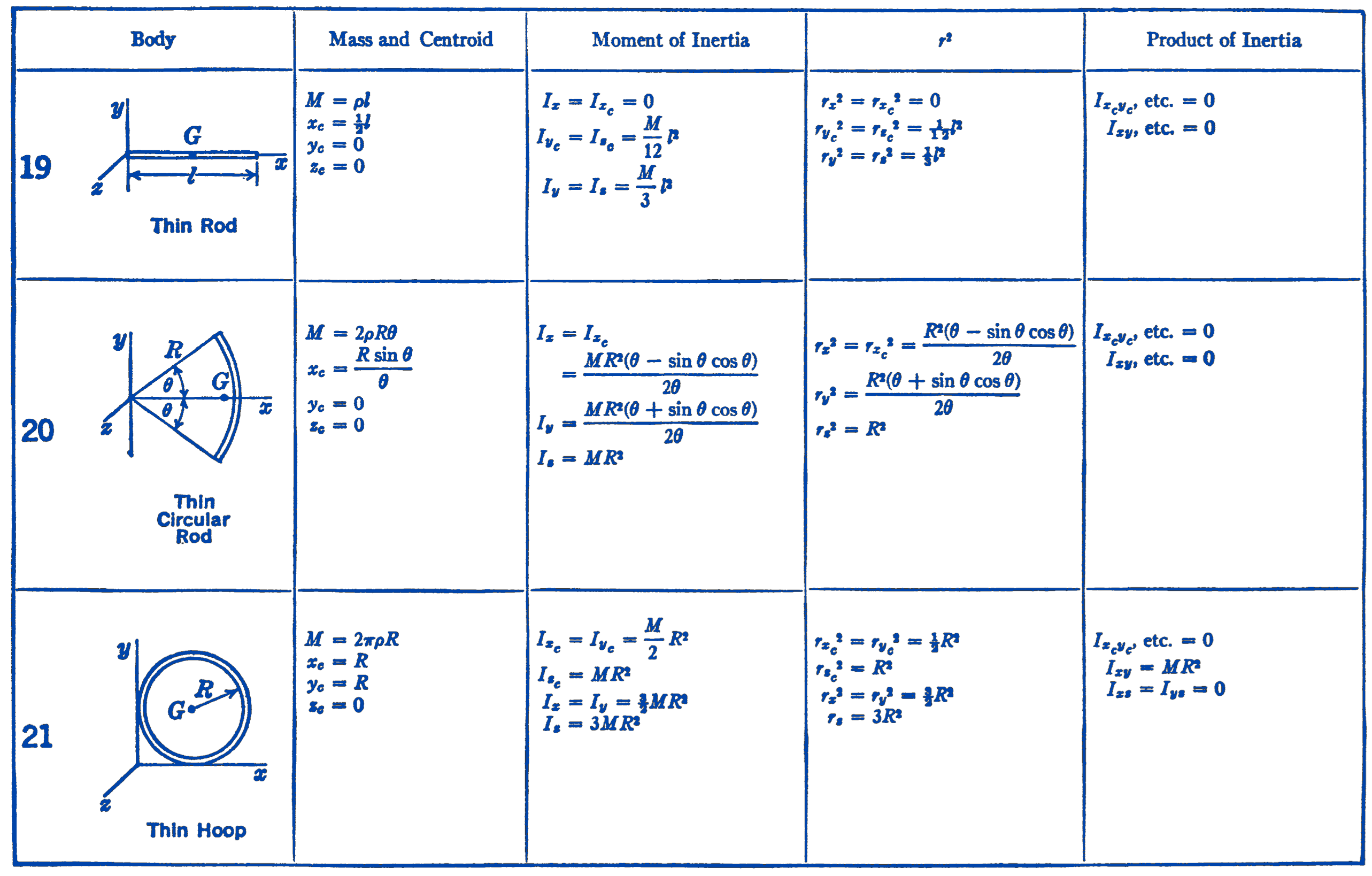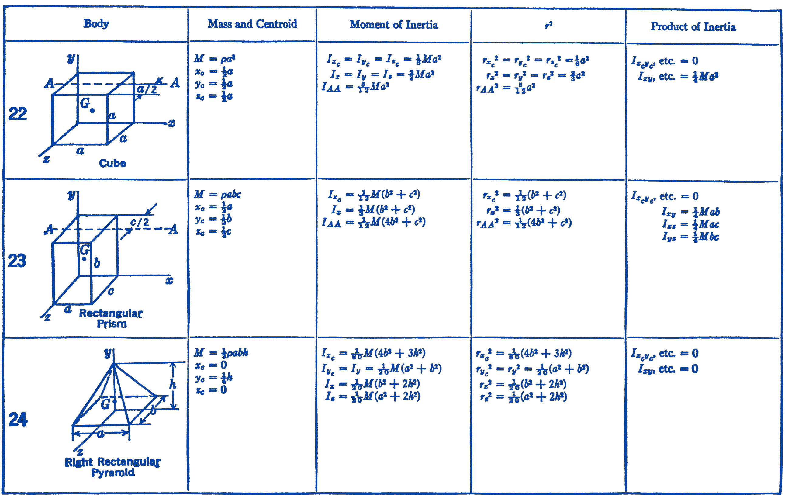 - \(I_{x_c}, I_{y_c}, I_{z_c}=\) Moment of inertia about an axis through the centroid parallel to the \(x y z\) axes shown.