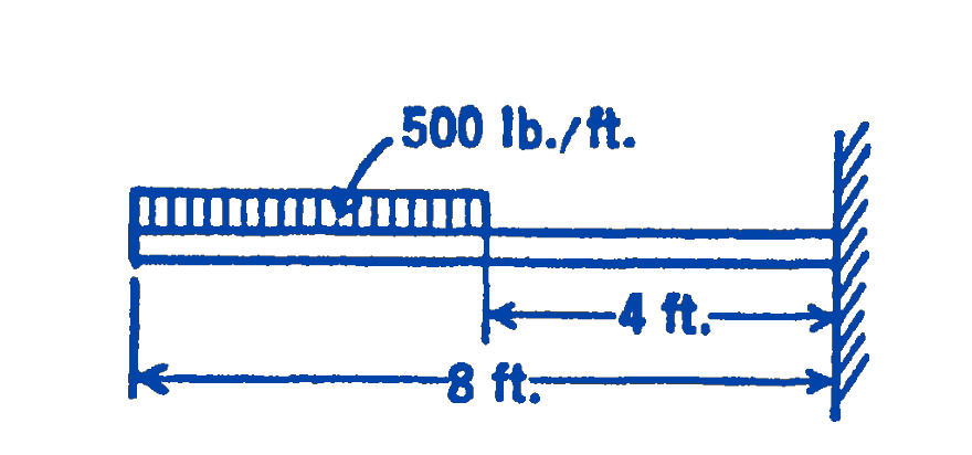 \[ \begin{aligned} \sum M_{0} & =0=-(12,000)(6)-M_{R} \\ M_{R} & =-72,000\ \mathrm{ft}\cdot\mathrm{lb} \\ \sum F_{y} & =0=R-12,000 ; \quad R=12,000\ \mathrm{lb} \end{aligned} \]