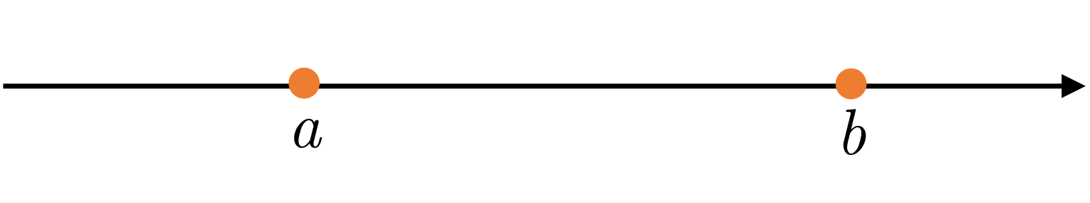 Given two numbers \(a\) and \(b\) , we write \(a<b\) ( \(a\) is less than \(b\) ) or equivalently \(b>a\) ( \(b\) is greater than \(a\) ) if \(b-a\) is positive. Geometrically \(a<b\) means \(a\) lies to the left of \(b\) on the number line (see the following figure ).