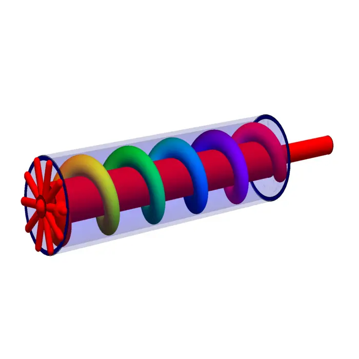 Exercise 3. There is a beautiful theorem of Pappus which gives the formula of a solid obtained by taking all points in distance \(d\) from a given curve \(r(t)\) provided the thickened curve does not intersect: the formula is \(L \pi d^{2}+4 \pi d^{3} / 3\), where \(L\) is the length of the curve. Archimedes designed a spiral pump in which a spiral \(r(t)=[10 \cos (t), 10 \sin (t), t]\) plays an important role. Assume \(0 \leq t \leq 100 \pi\), what is the volume of the solid consisting of all points in distance \(1\) to the curve? You just need to compute that volume and not prove the formula.