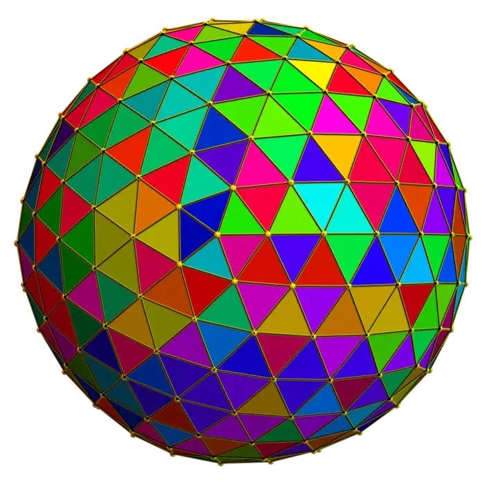 Exercise 1. For a polyhedron with \(v\) vertices, \(e\) edges and \(f\) triangular faces Euler proved his famous formula \(V-E+F=2\). An other relation \(3 F=2 E\) called a Dehn-Sommerville relation holds because each face meets \(3\) edges and each edge meets \(2\) faces. Assume the number \(F\) of triangles is \(F=540\). Write down a system of equations for the unknowns \(V, E, F\) in matrix form \(A x=b\), then solve it using Gaussian elimination.