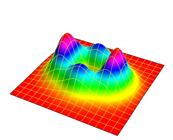 Exercise 5. Describe how to build a concrete function \(f(x, y)\) of two variables which has two maxima and no minimum and no saddle point. (This is not possible on an island by the island theorem. It is possible however in the plane but such a function is not easy to describe. Discuss strategies with each other.)