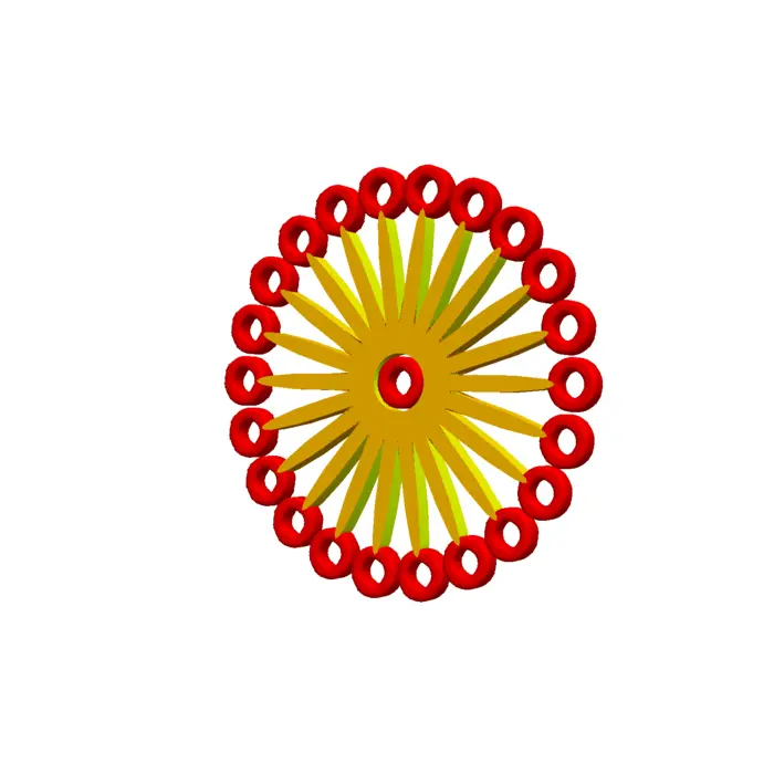 Exercise 3. The fidget spinner is so "\(2017\)" now. What is hot now is the math \(\boldsymbol{22}\) spinner with \(23\) bearings! What is the moment of inertia \(\iint_{G} (x^{2}+y^{2}) \,d x \,d y\) of the math \(\boldsymbol{22}\) fidget spinner region \(G\) given in polar coordinates as \(1 / 2 \leq r \leq 2+\cos (22 \theta)\). To keep our bearings, we do not count the bearings.
