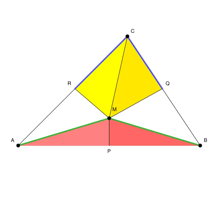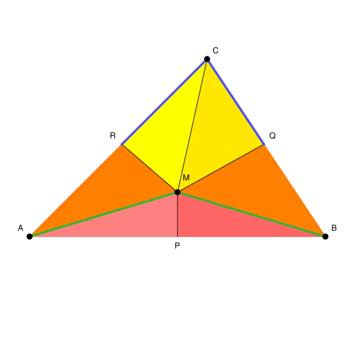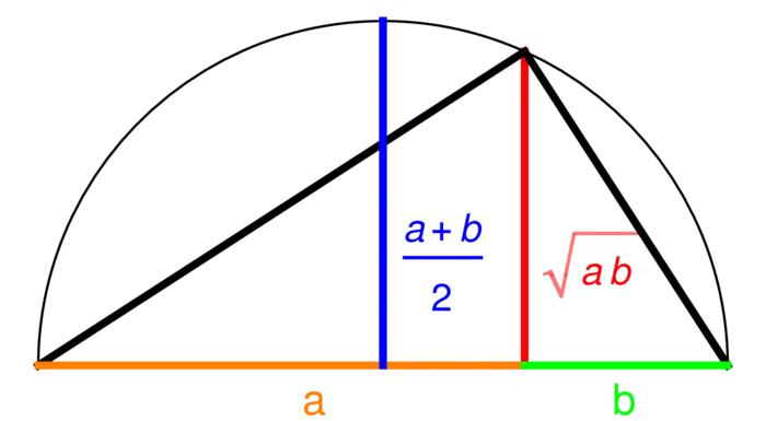 The geometric-algebraic inequality assures that the geometric mean is smaller or equal than the algebraic mean. In order to appreciate that proof, we have first to verify an identity relating the lengths \(a, b\) cut by the altitude line and height \(h\).