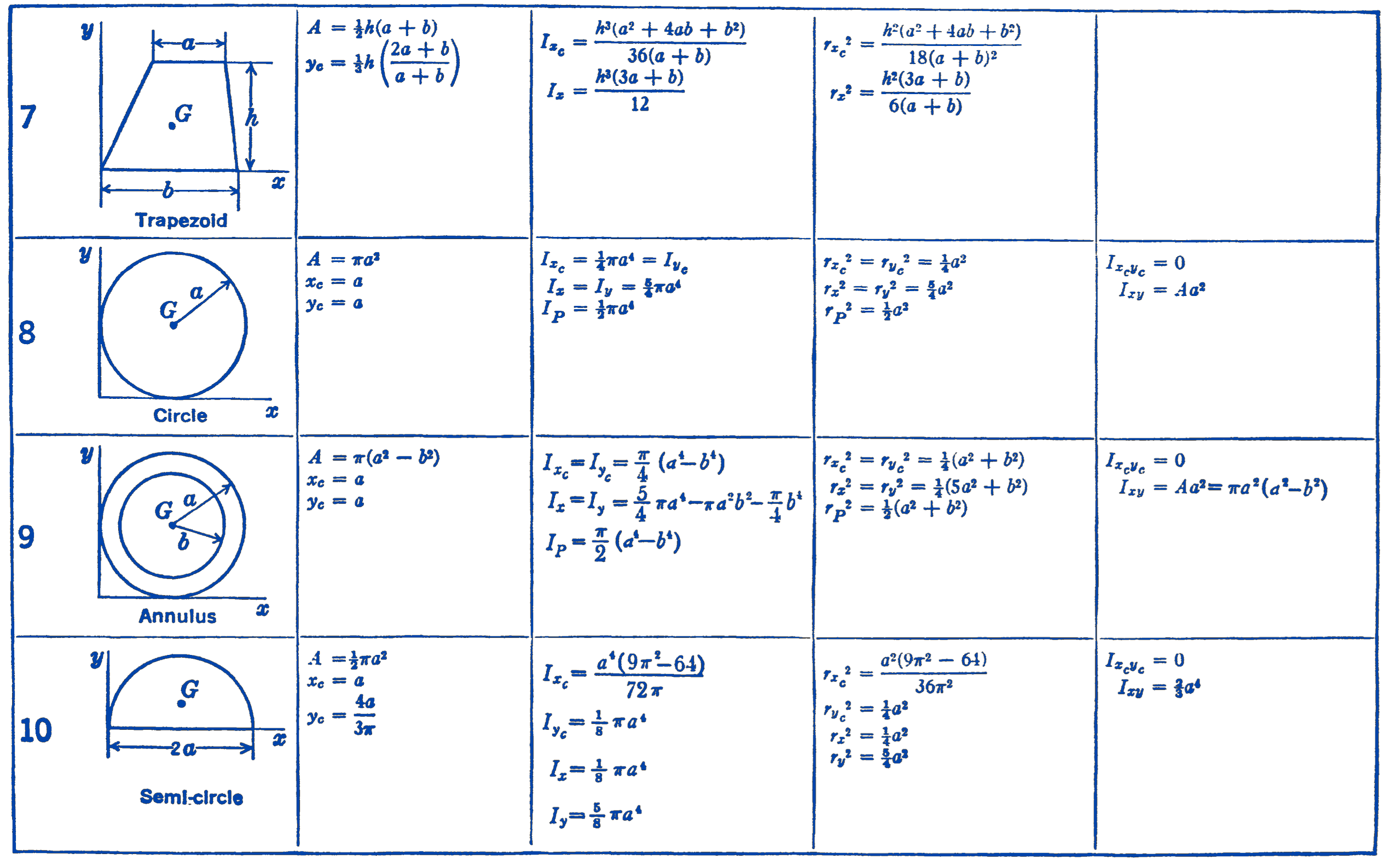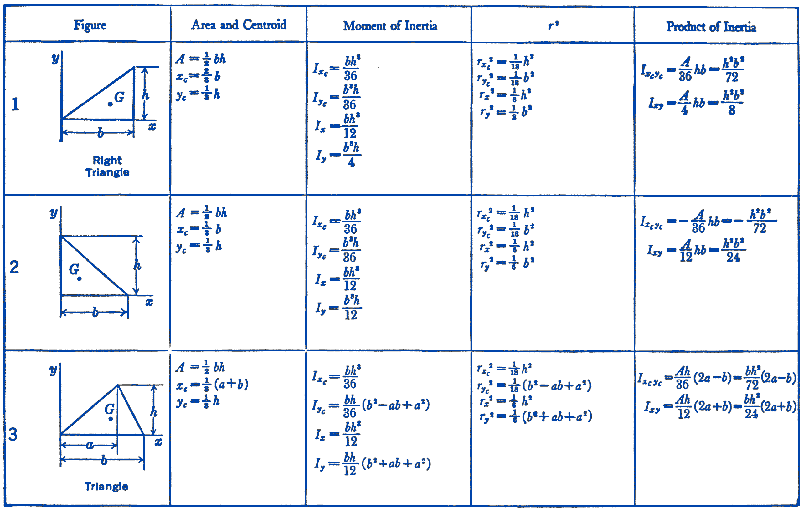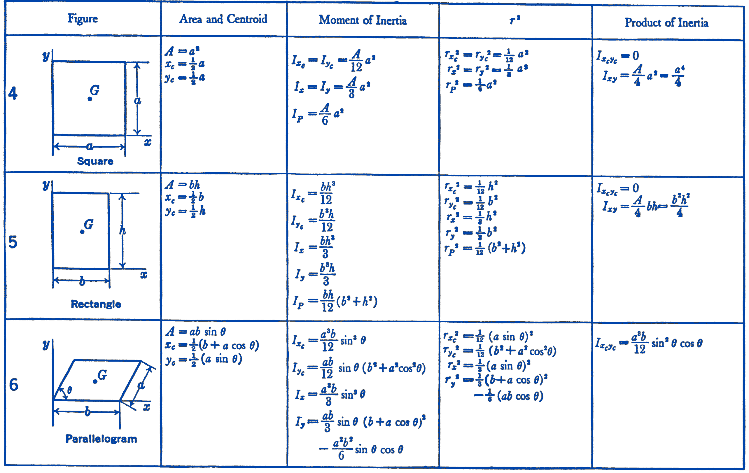 - \(I_x, I_y=\) Moment of inertia with respect to the \(x y\) axes shown.