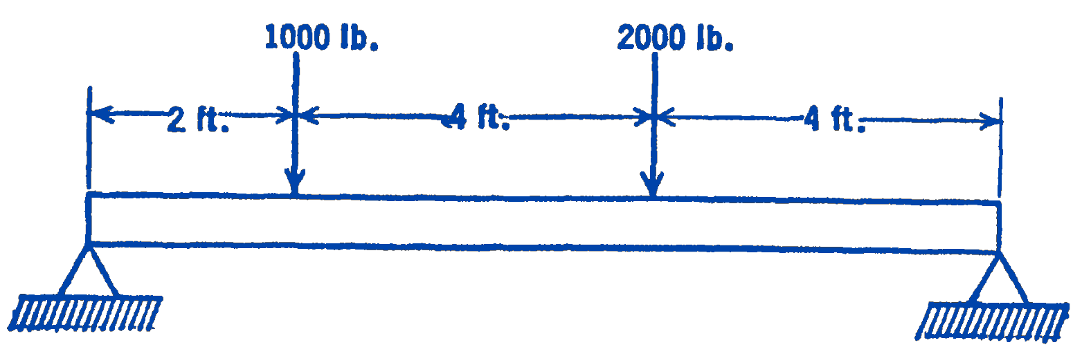Example 1. Draw the shearing force and bending moment diagrams for the simply supported beam with two concentrated loads shown in Fig. 3.