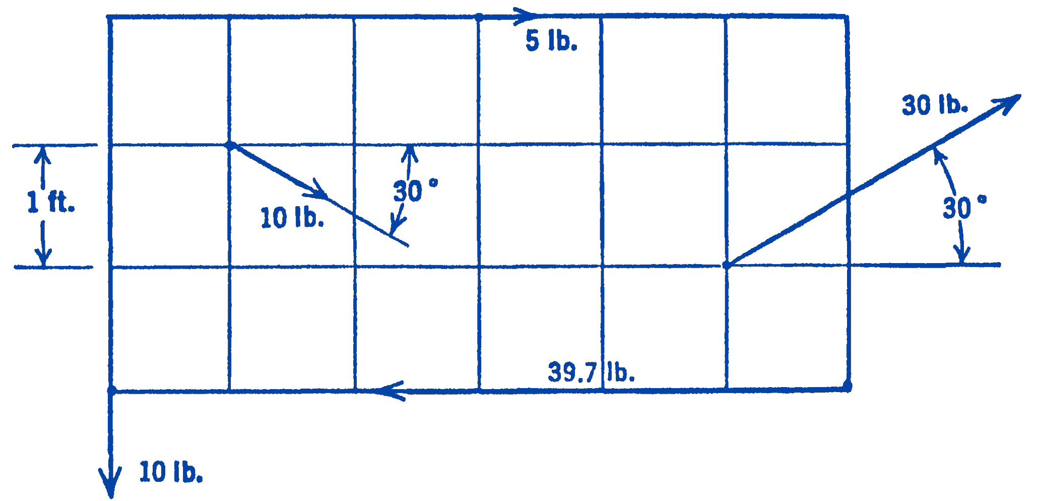 3. Find the resultant of the system of coplanar forces shown in the diagram by the graphical method.