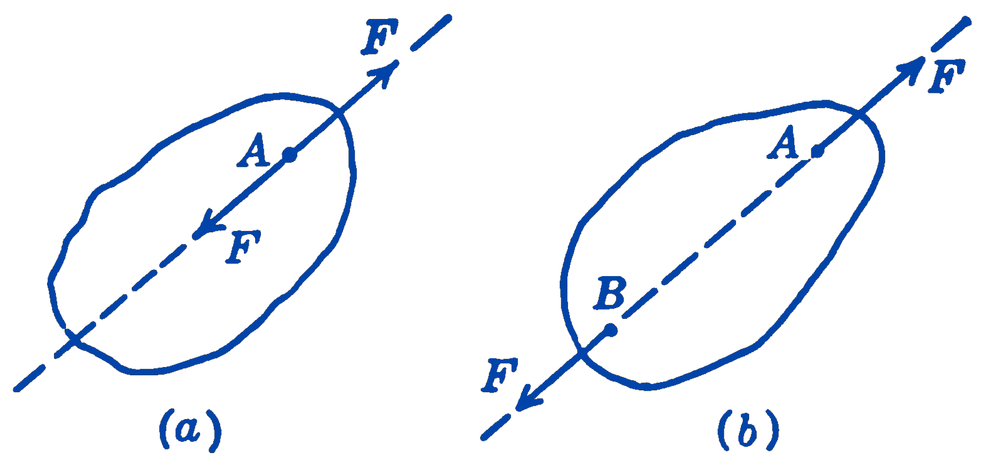 Suppose the system of Fig. 1a is changed so that the two forces which originally acted at the same point A now act at two different points, A and B, on the line of action of the two forces.
