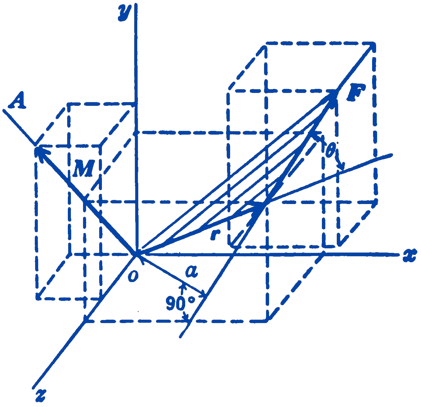 These are, of course, the same expressions obtained from Fig. 1. The introduction of the vector product makes possible a concise notation for moment vectors. Note that the sign convention for moments previously mentioned is consistent with the sign convention for vector products.