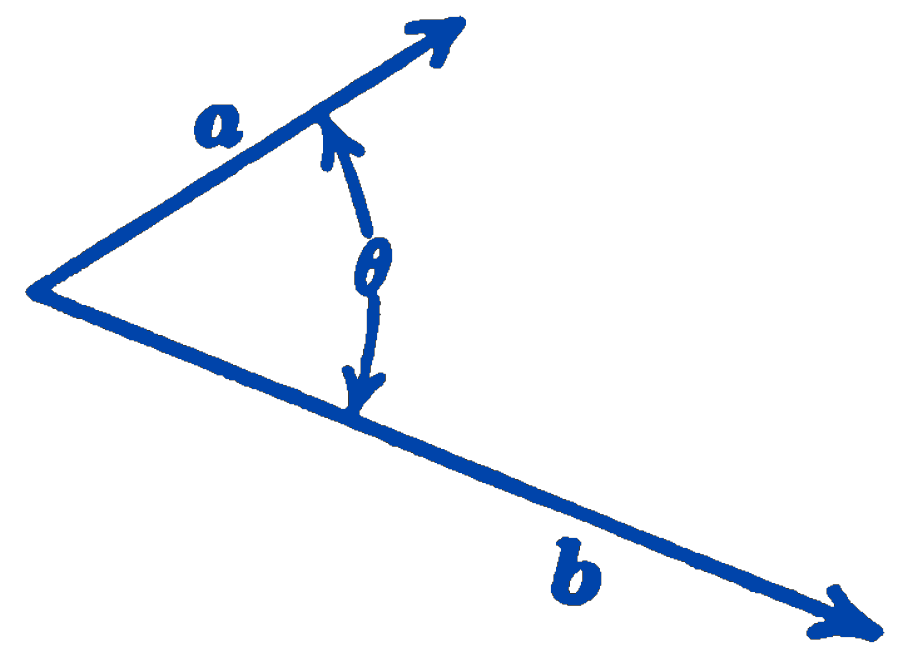 Given two vectors \(\mathbf{a}\) and \(\mathbf{b}\) at an angle \(\theta\) (Fig. 1)1, the scalar product of the two vectors is defined as a scalar quantity having the magnitude \((a)(b) \cos \theta\). The scalar product is thus equal to the magnitude of one vector multiplied by the component of the second vector in the direction of the first vector. The scalar product is written \(\mathbf{a} \cdot \mathbf{b}\), with a dot between the two vectors, and hence it is often called the dot product.